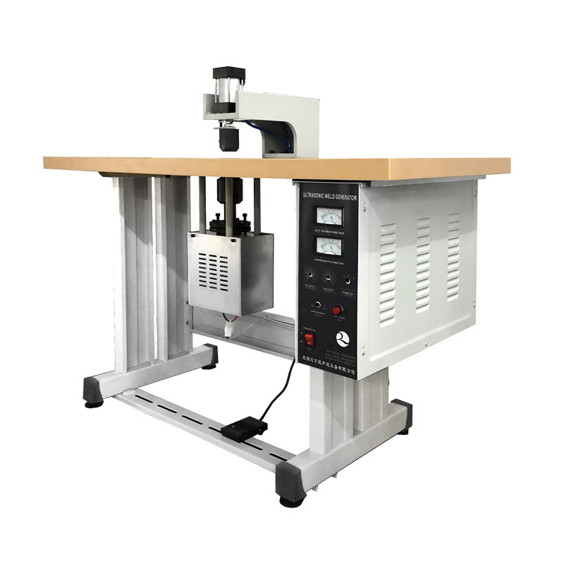 超聲波布料切割機利用超聲波震動摩擦瞬間產生熱能的原理,使模具或切刀在氣缸的壓力下接觸超聲波震動表面,從而達到切斷或穿孔的效果